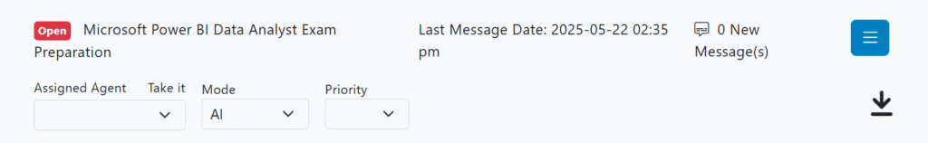 - Assign an agent, change conversation mode (AI, Manual, or Moderated), and adjust priority.