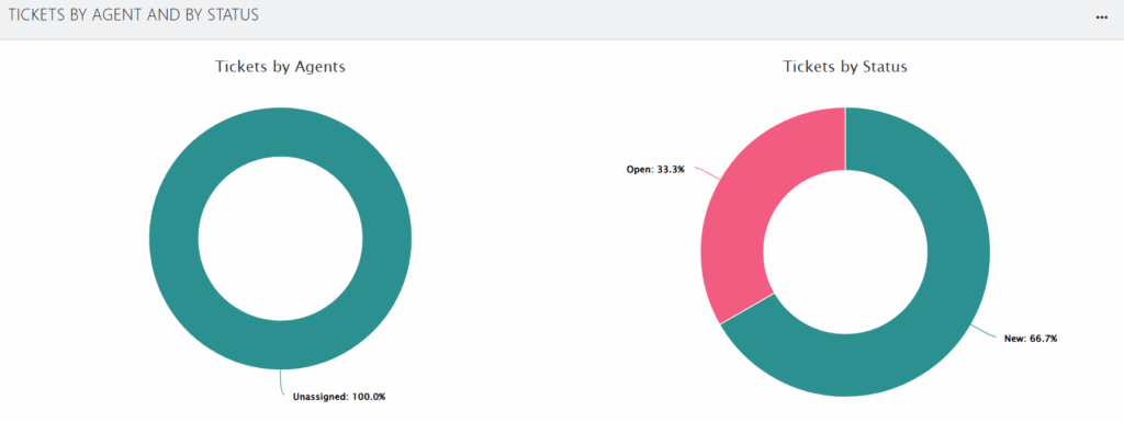 - Tickets by Agents: A donut chart illustrates the percentage of tickets assigned to agents versus those that are