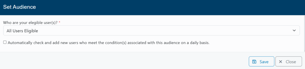 - All Users Elegible: The campaign will be sent to all users and will be accessible for everyone.