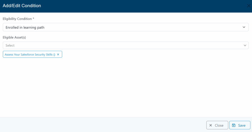 Click on the + Add Condition(s) link and a new modal will be displayed.