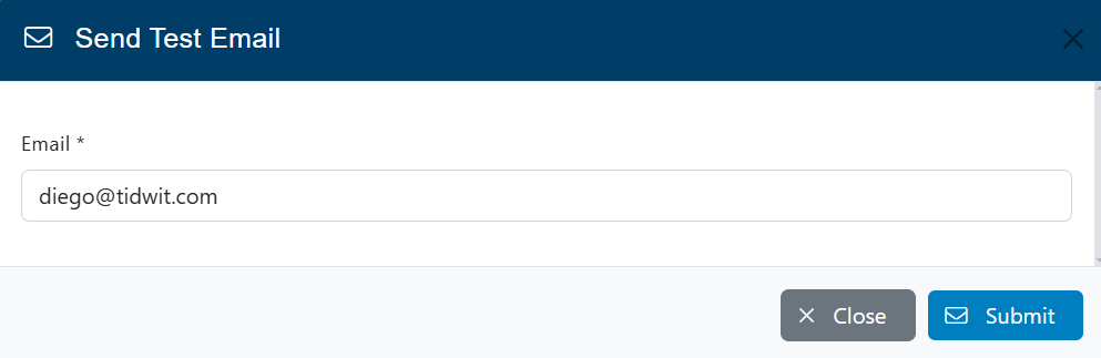 Type the email address where you want to send the Test Email and click on Submit.