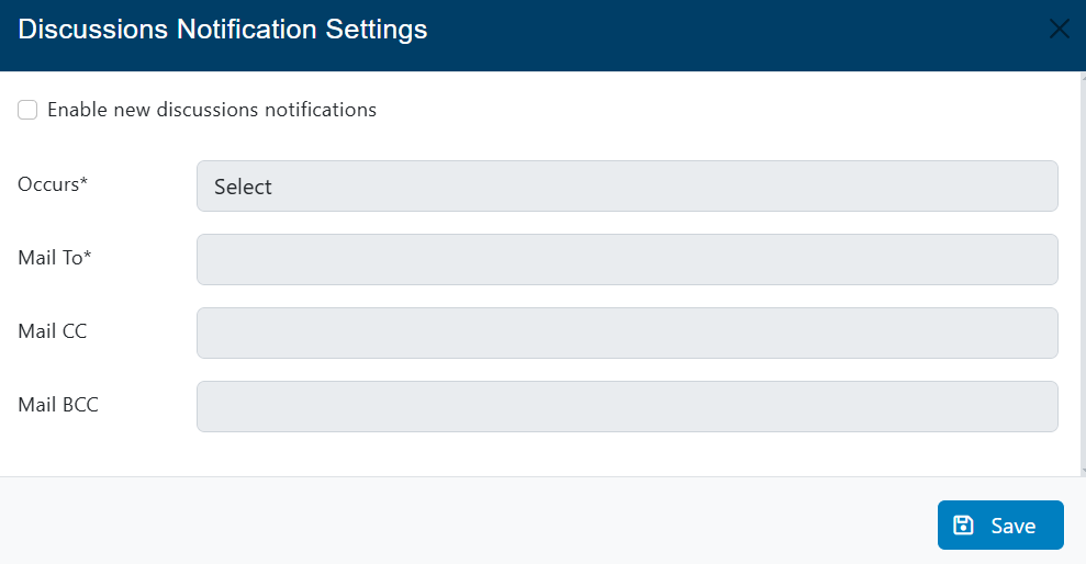 Opens the configuration panel for managing discussion-related notifications. Moderators can adjust preferences to receive alerts for new posts, replies, flagged content, or other moderation-related events.