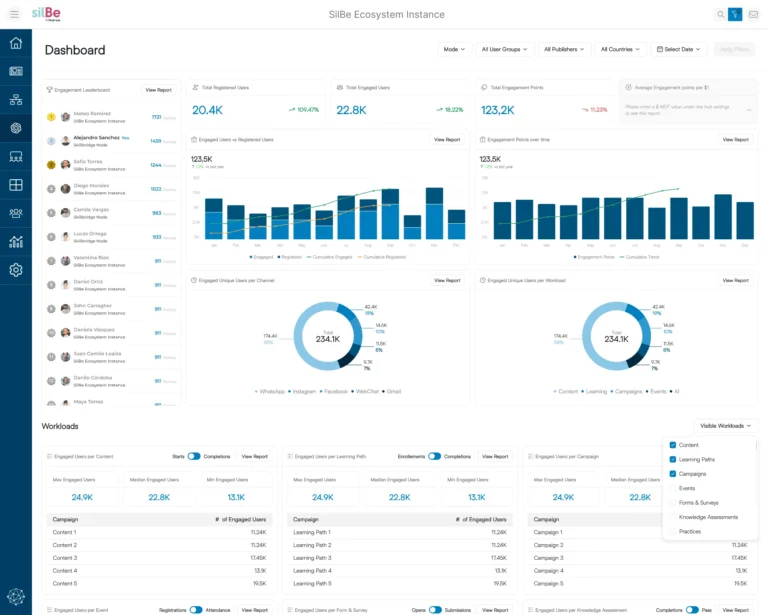 Organizations managing extended ecosystems face scattered engagement data. Interactions across courses, campaigns, AI conversations, vouchers, and events often exist in isolated silos, making it difficult to understand true engagement levels, compare partners, or measure readiness. Without a clear, consolidated view, allocating marketing funds, driving adoption, and launching impactful initiatives becomes complex and inefficient.