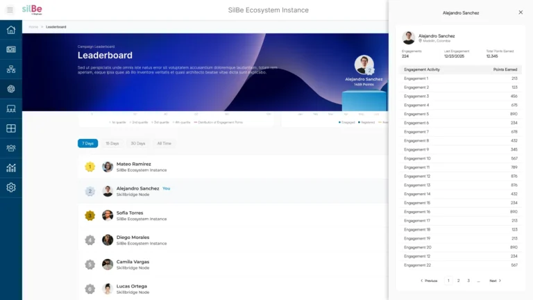 The Ecosystem Engagement Hub consolidates every user interaction from all TIDWIT workloads into a single, actionable view. Whether someone registers for a course, opens a campaign email, claims a voucher, engages with AI, or completes an assessment, every activity is tracked, scored, and summed across nodes and the broader ecosystem. Powerful dashboards, leaderboards, and reports allow you to compare readiness, spot high-performing partners, and identify gaps – all from one central hub.