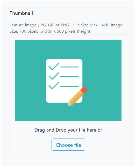 This option allows you to upload an image to use as a thumbnail for the assessment. Click Browse or drag and drop it into the corresponding area.